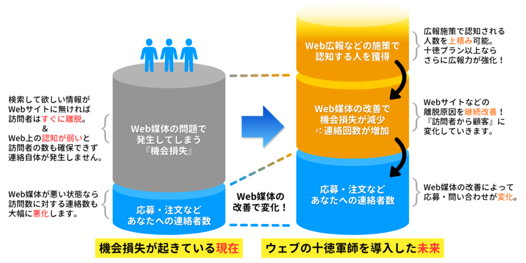 そこでウェブの十徳軍師は「専門家に相談したい」と「課題があれば改善してほしい」を両立できるサービスとして生み出されました。